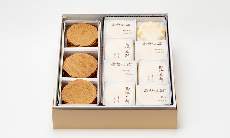 | 御池煎餅・小豆せんべい | 御池煎餅 32枚入 小豆せんべい 120g入 | 5,130円 |