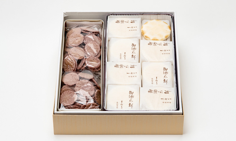 | 御池煎餅・木賊煎餅 | 御池煎餅 48枚入 木賊煎餅 10枚入 | 8,046円 |