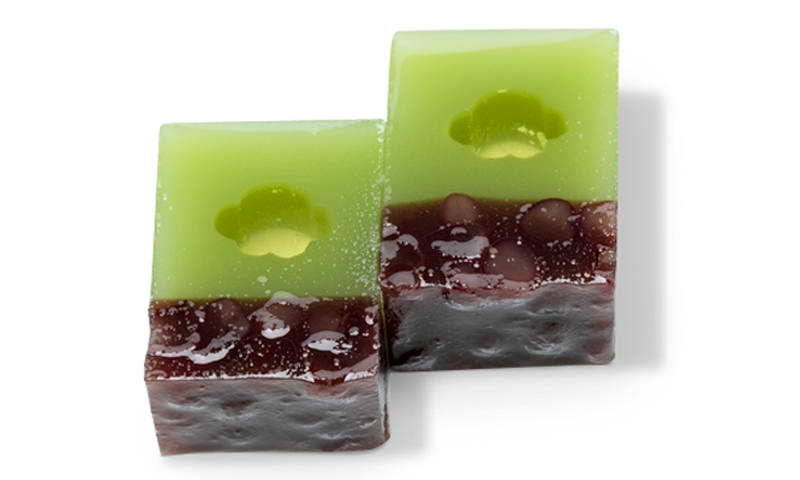尾形光琳の『紅白梅図屏風』の想いからの棹菓子。夏仕様の涼しげな色目に仕上げました。